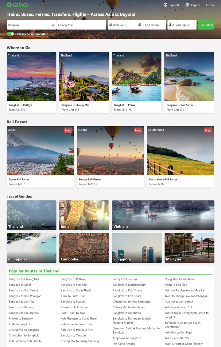 Transport tickets for your journey through Thailand, Vietnam, Indonesia, the Philippines, Japan, Cambodia, Malaysia, India, Sri Lanka, Taiwan, Australia, New Zealand, and beyond – budget travel made easy.