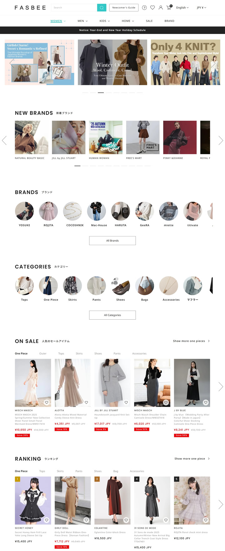 An online fashion store where you can buy popular Japanese fashion brands at great prices, even if you live abroad. You can also use special coupons, valid on all items, including sale products.
