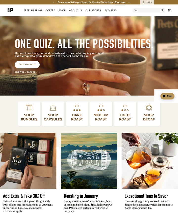 Fresh-from-the-roastery coffee delivered directly to your door. Peet’s sources the highest quality coffee beans, roasts by hand to unlock each bean’s potential, and delivers it fresh to bring you the perfect cup.