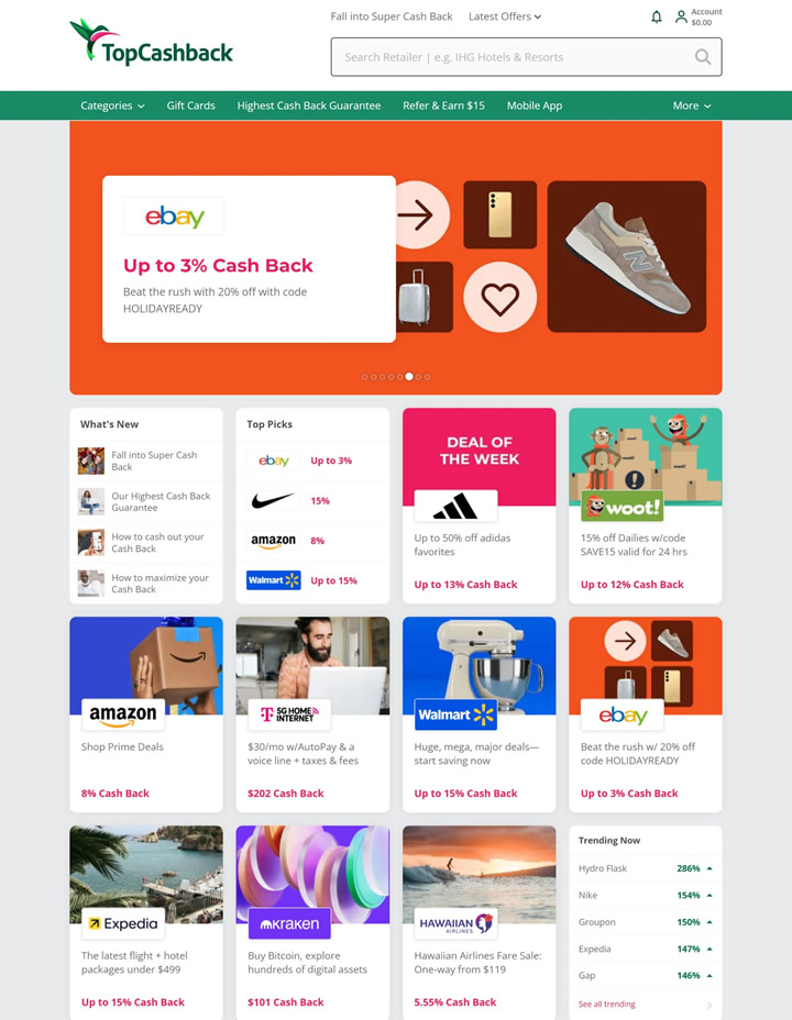 You’ll find great cash back rates on everything such as airport parking, hotel bookings and car rentals, as well as your favorite fashion, electronics and home.